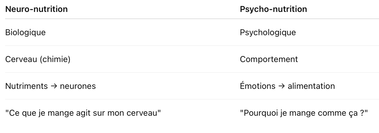 3. Différences fondamentales entre neuronutrition et psychonutrition